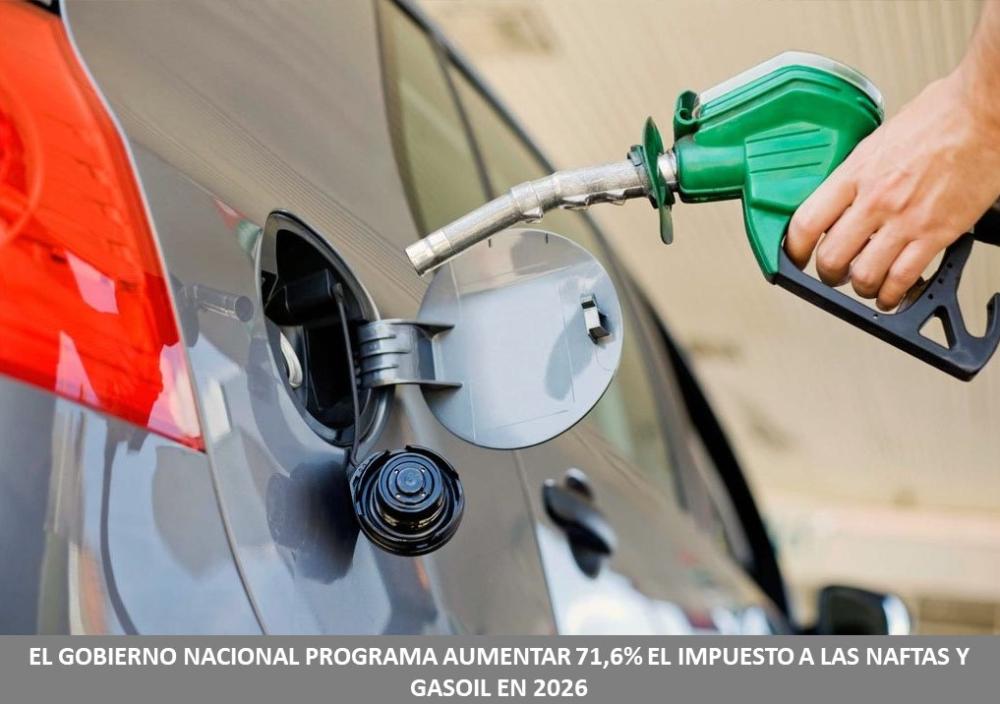 : EL GOBIERNO NACIONAL PROGRAMA AUMENTAR 71,6% EL IMPUESTO A LAS NAFTAS Y GASOIL EN 2026