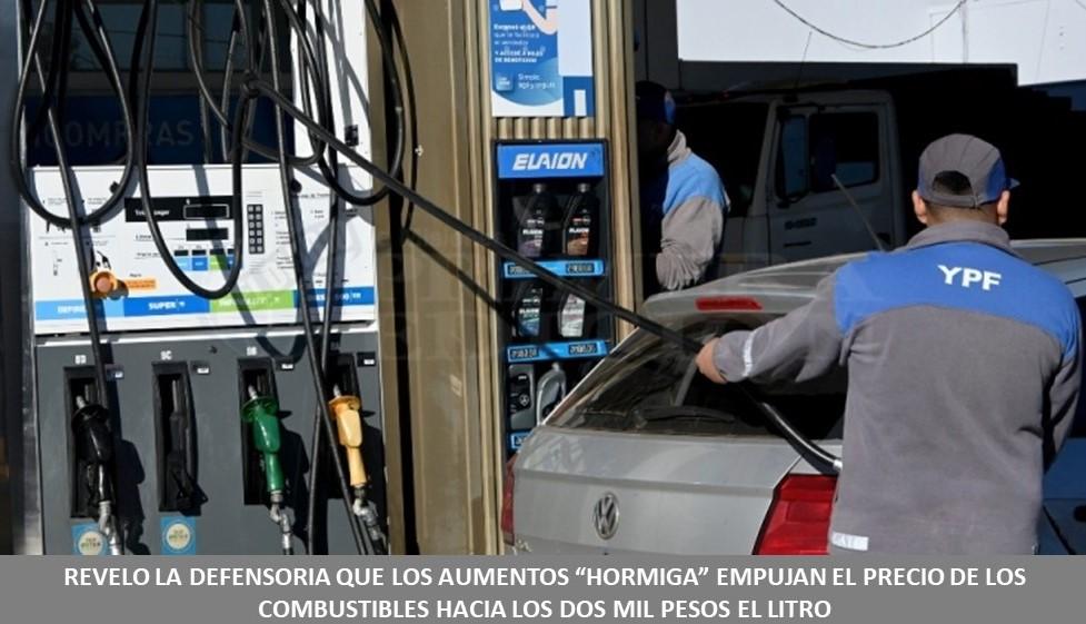 : REVELO LA DEFENSORIA QUE LOS AUMENTOS “HORMIGA” EMPUJAN EL PRECIO DE LOS COMBUSTIBLES HACIA LOS DOS MIL PESOS EL LITRO