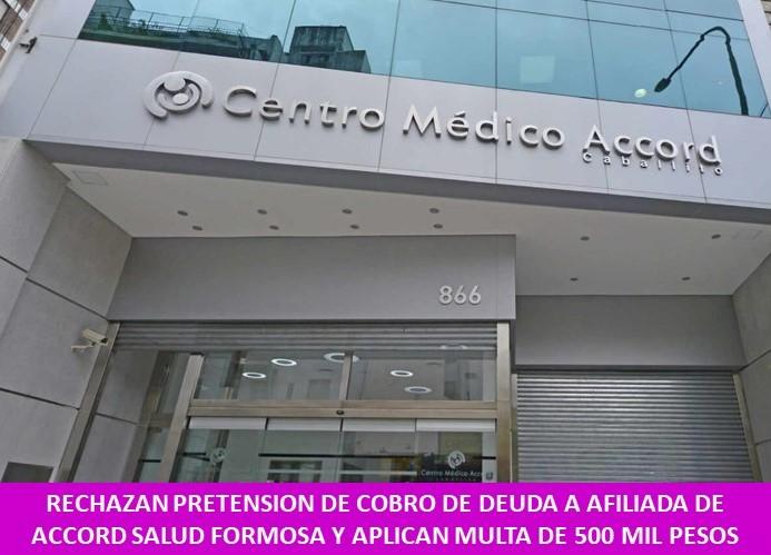 : IMPIDEN COBRO DE DEUDAS A AFILIADA DE ACCORD SALUD FORMOSA Y APLICAN MULTA DE 500 MIL PESOS