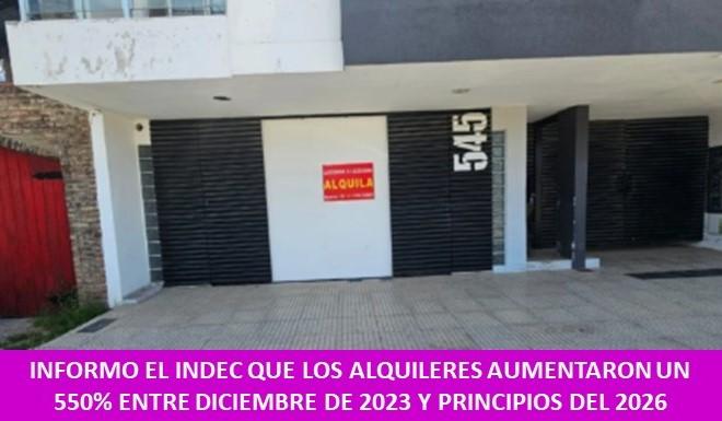 : INFORMO EL INDEC QUE LOS ALQUILERES AUMENTARON UN 550% ENTRE DICIEMBRE DE 2023 Y PRINCIPIOS DEL 2026