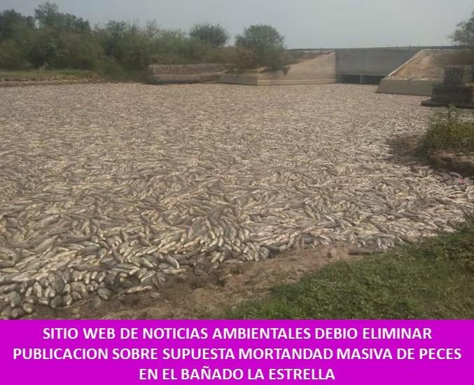 : SITIO WEB DE NOTICIAS AMBIENTALES DEBIO ELIMINAR PUBLICACION SOBRE SUPUESTA MORTANDAD MASIVA DE PECES EN EL BAÑADO LA ESTRELLA